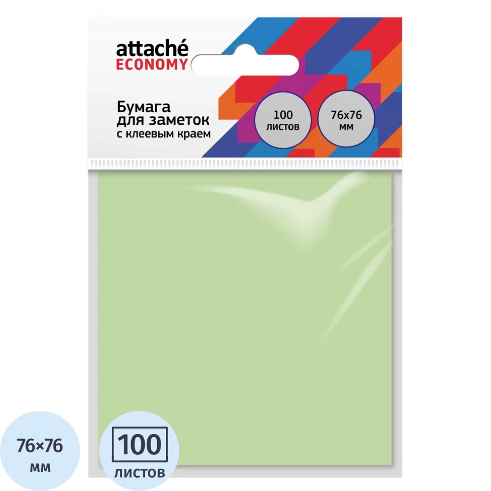 Бумага для заметок с клеевым краем Economy 76x76 мм 100 л паст. зеленый