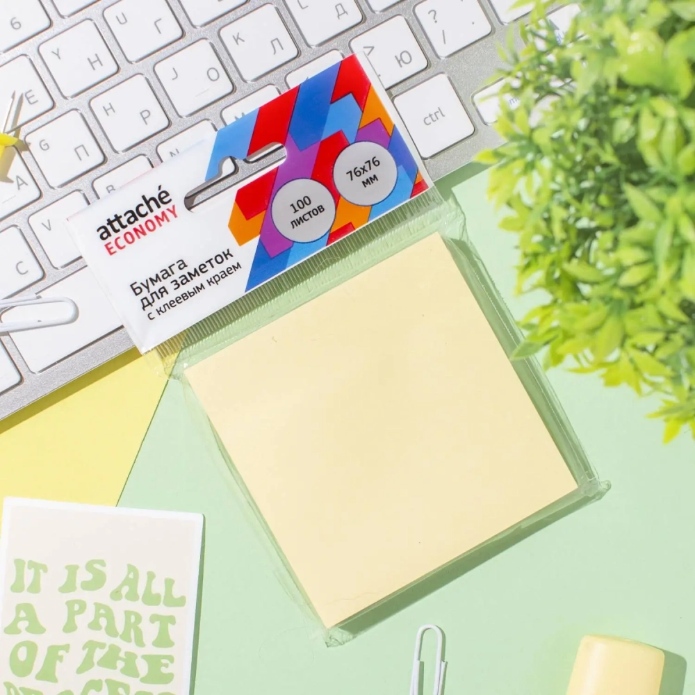 Бумага для заметок с клеевым краем Economy 76x76 мм 100 л пастельный желтый