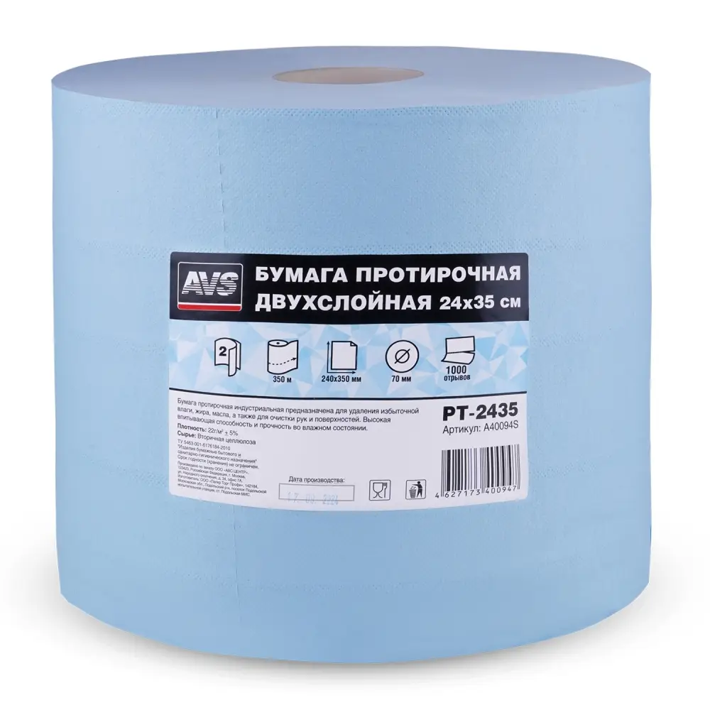 Бумага протирочная двухслойная (24х35см) 1000 листов AVS PT-2435