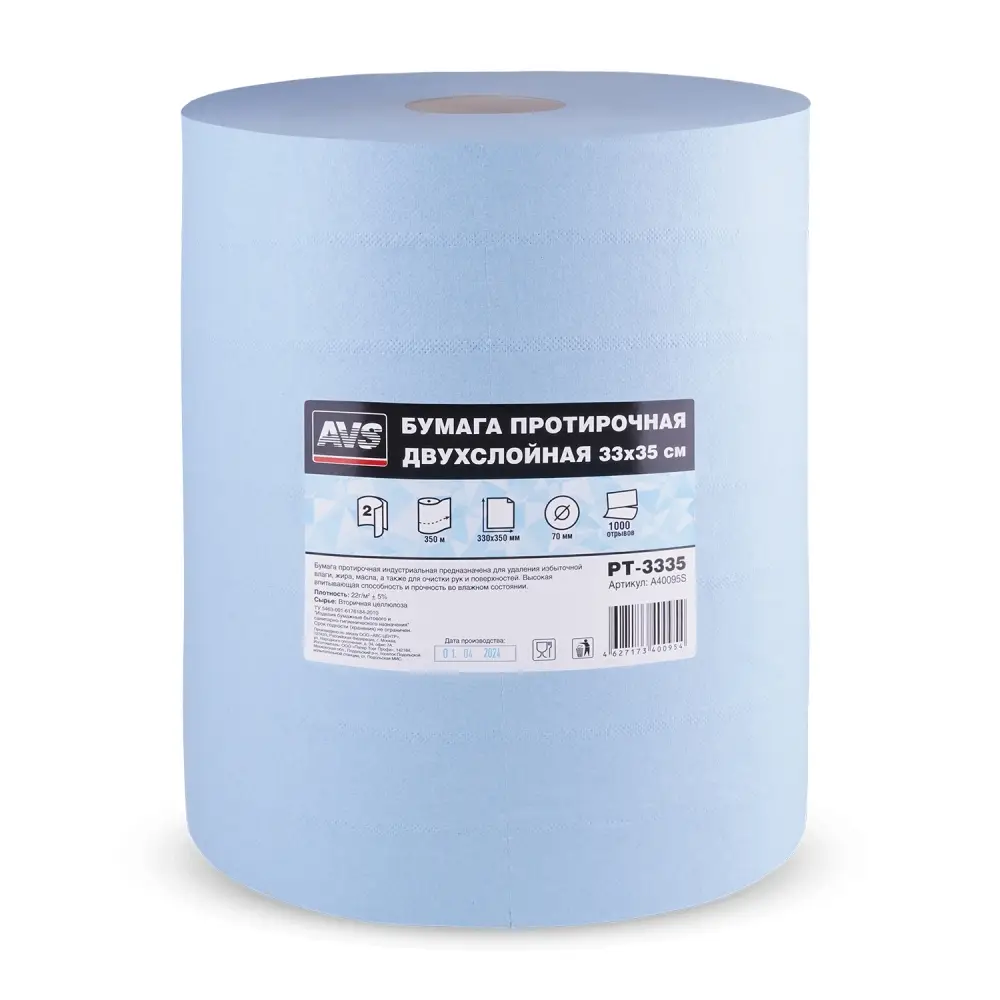 Бумага протирочная двухслойная (33х35см) 1000 листов AVS PT-3335