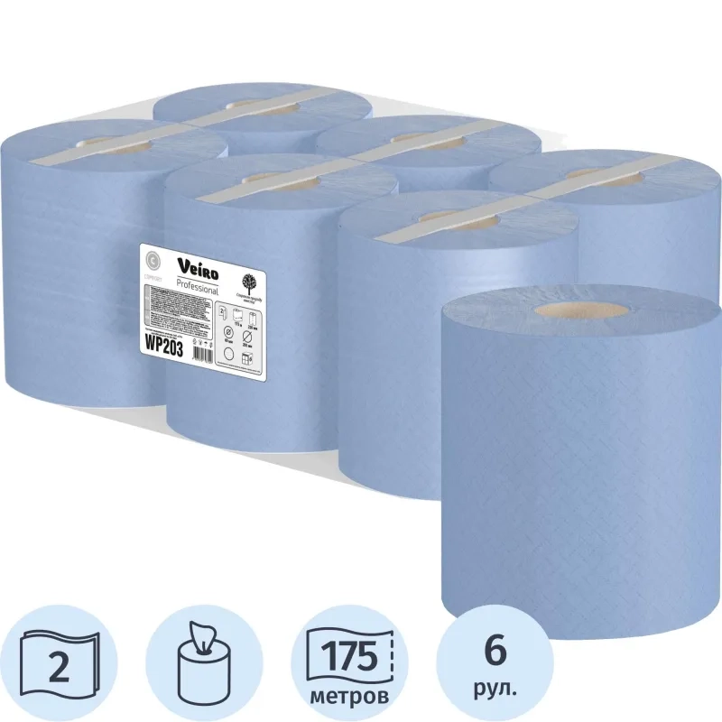 Бумага протирочная Veiro 2сл.500лx6рул/уп, съем.втул,синий WP203