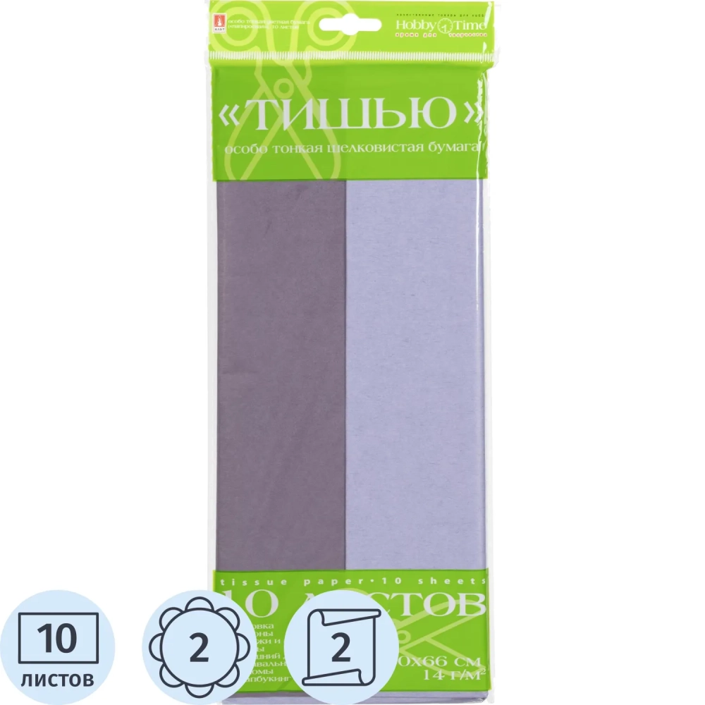 Бумага Тишью 10 листов/наб, лиловый / светло-сиреневый 2-144/04