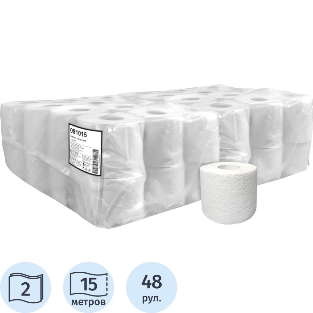 Бумага туалетная 2сл вторичная целлюлоза 15м 48рул/уп Спб
