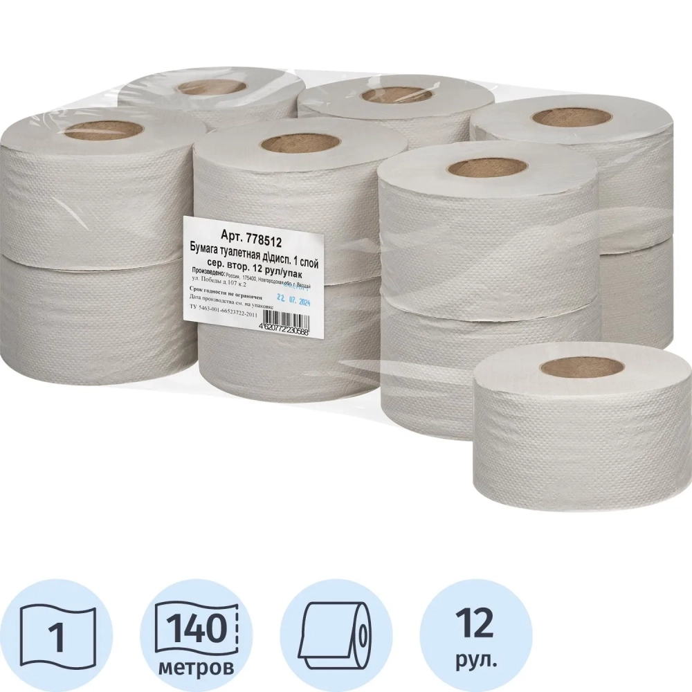 Бумага туалетная д/дисп 1сл серая втор 200ф 12рул/уп_Т-0024/Т-0024А