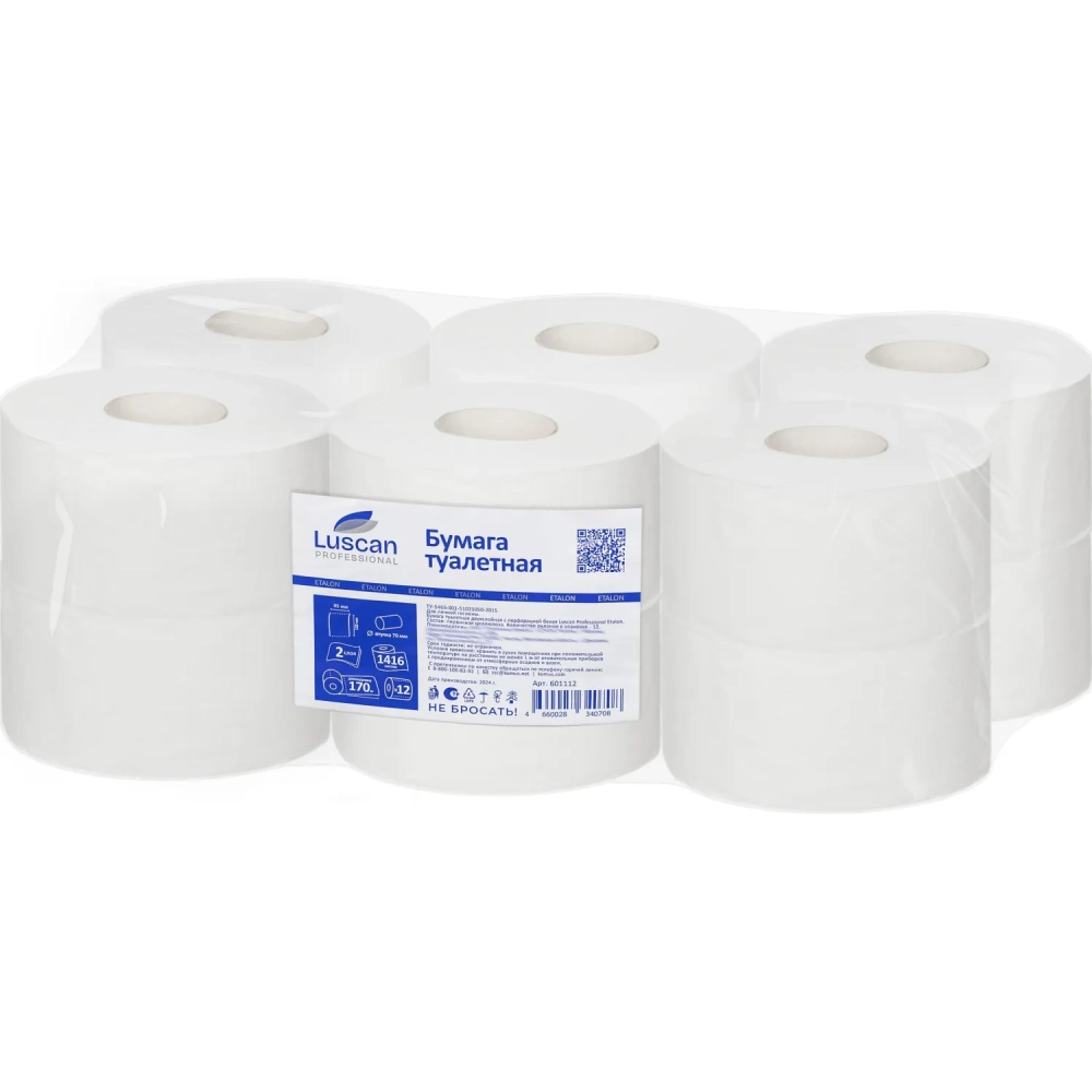 Бумага туалетная д/дисп Luscan Professional 2сл белая цел 170м 12рул/уп