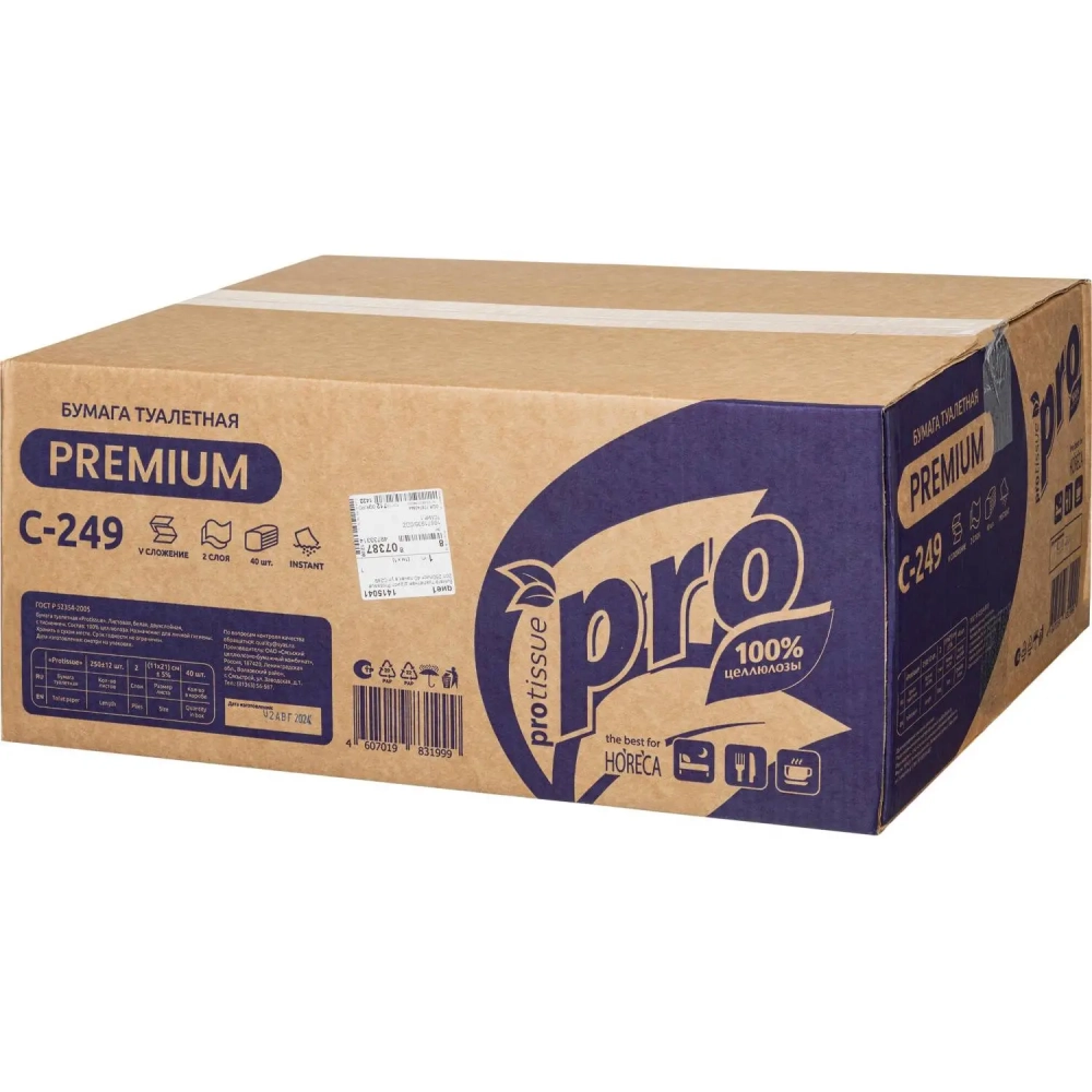 Бумага туалетная д/дисп Protissue 2сл белая цел 250л 40пач/уп_С249