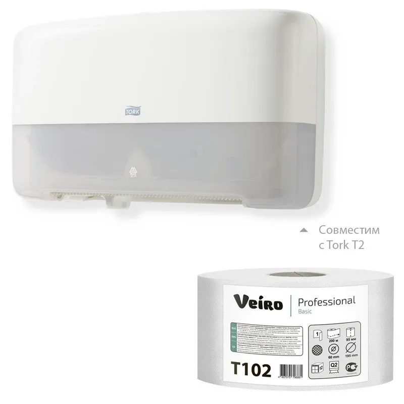 Бумага туалетная д/дисп Veiro Q2 Basic 1сл серая вторич 200м 12рул/уп_T102