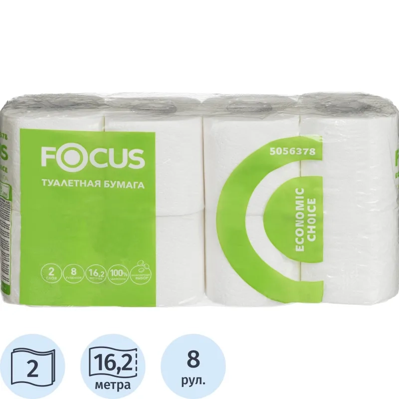 Бумага туалетная Focus Economic Choice 2слбел 100%цел 16,2м 8рул/уп 5056378