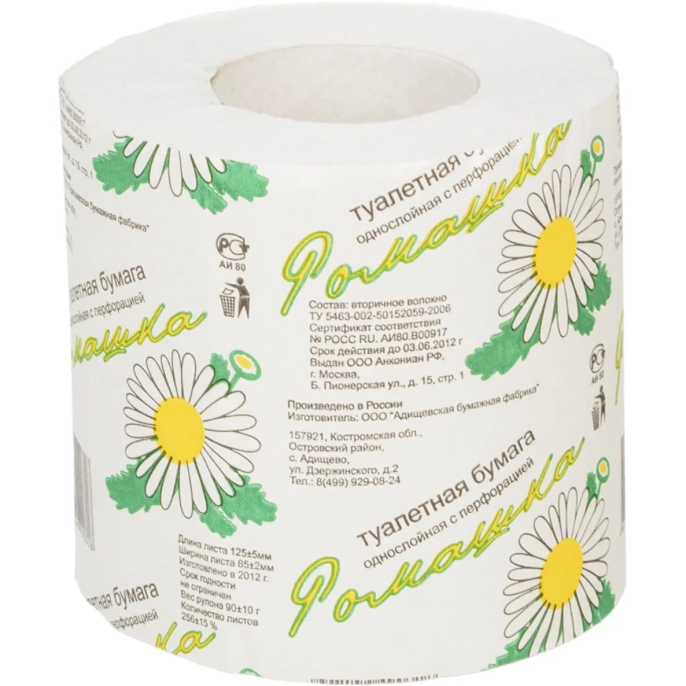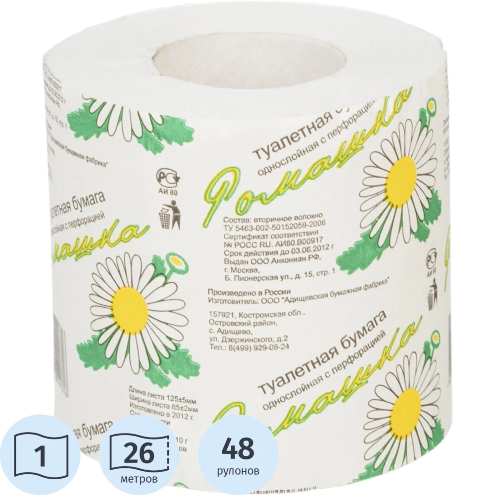 Бумага туалетная ОСТРОВСКАЯ Ромашка 1сл втулка серая 26м 48рул/уп_СПБ/КЗН