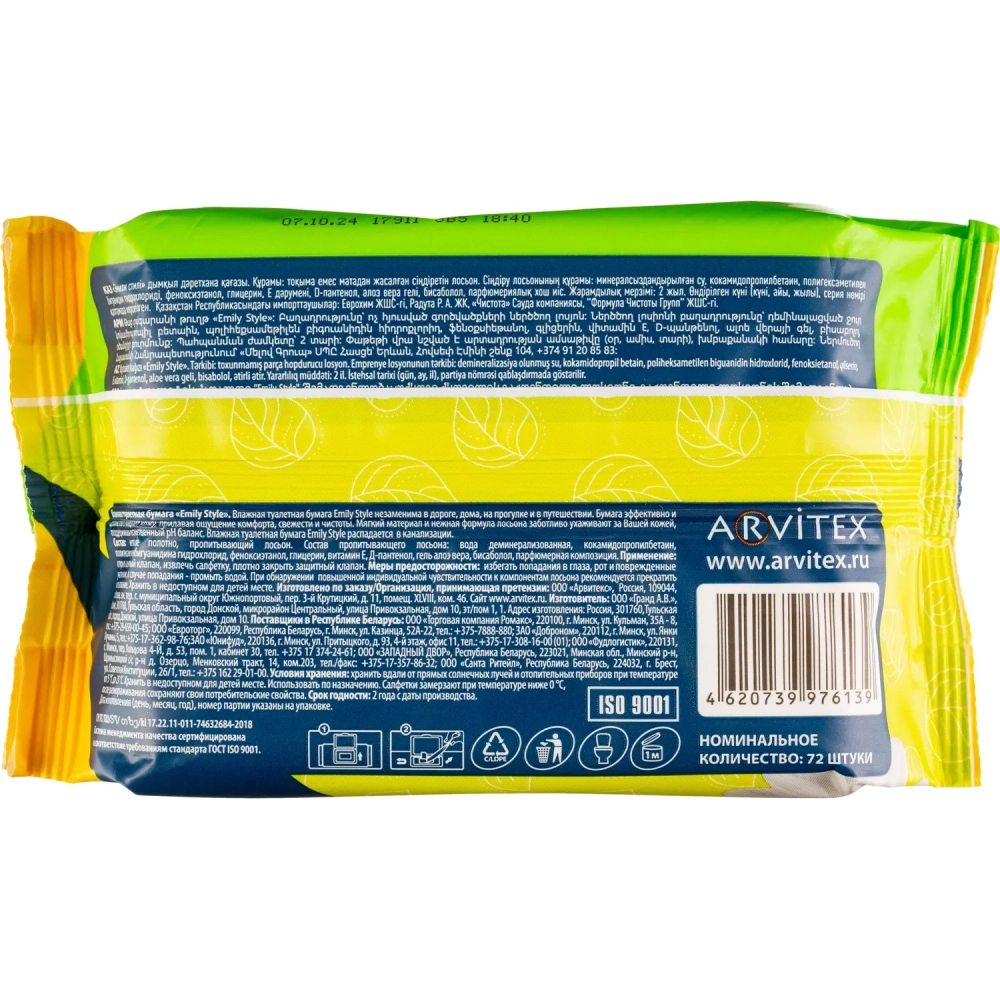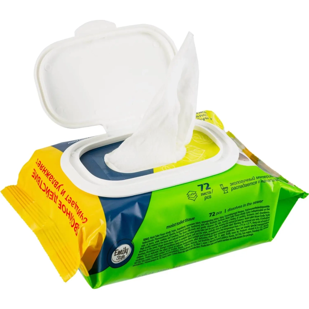 Бумага туалетная влажная Emily Style растворяющаяся,с крышкой 72шт/уп