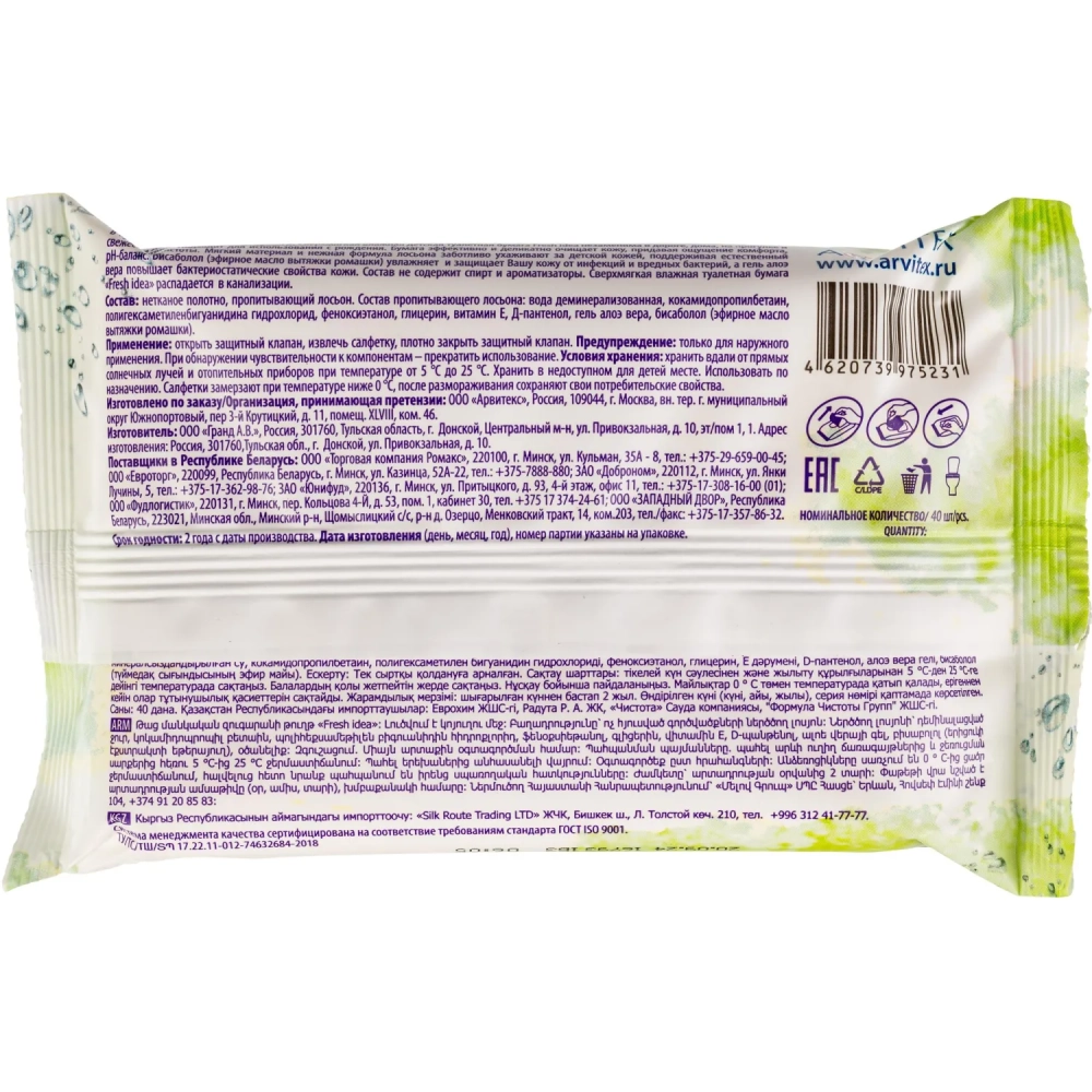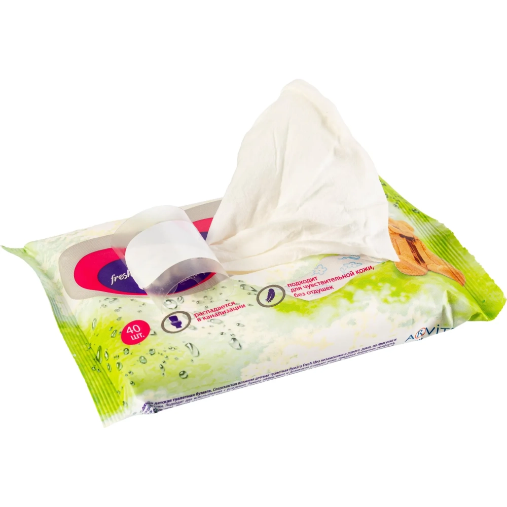 Бумага туалетная влажная Fresh idea детская растворяющаяся гипоал 40шт/уп