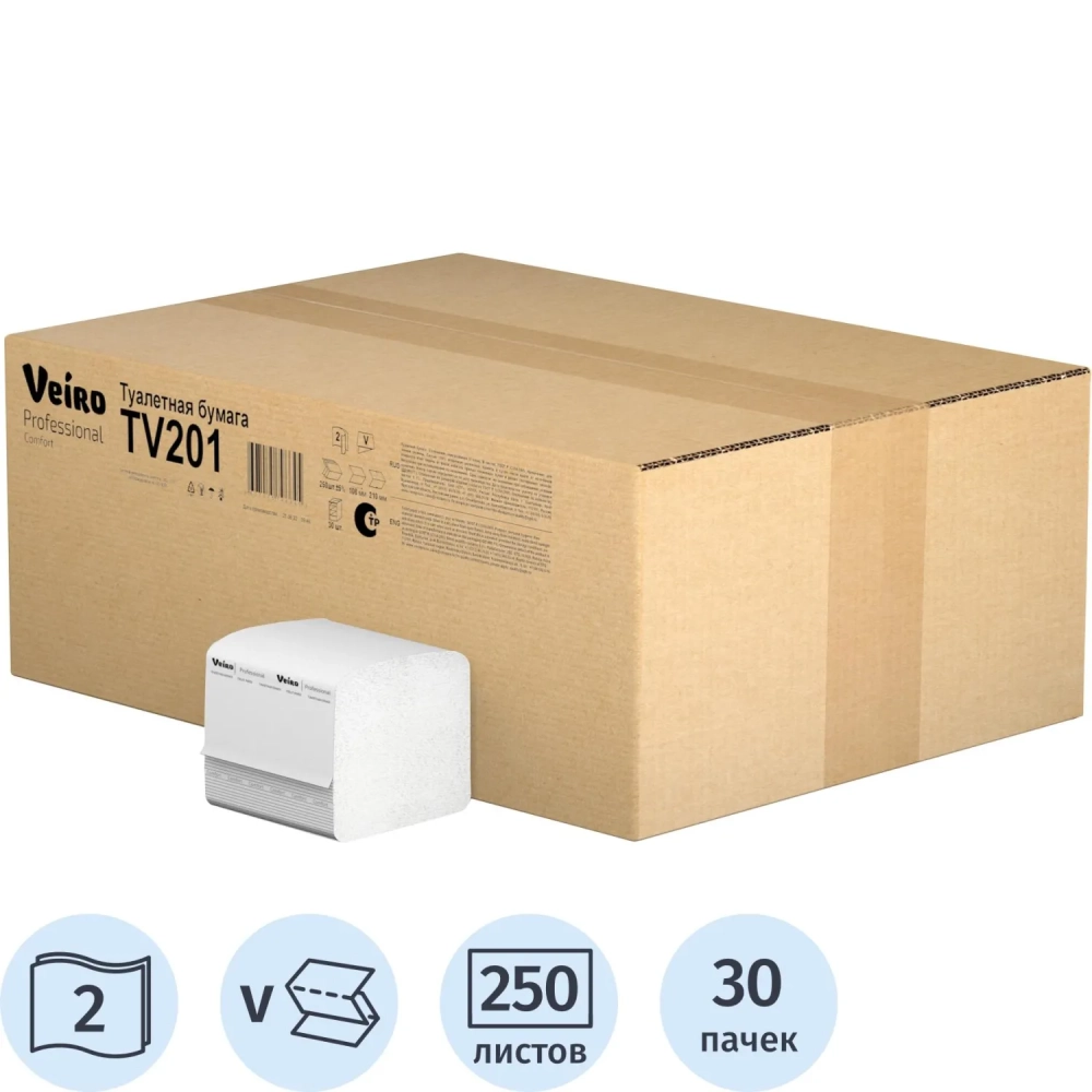 Бумага туалетная Vсл Veiro Professional 2сл 250лист 30 пач/уп TV201_УГМК