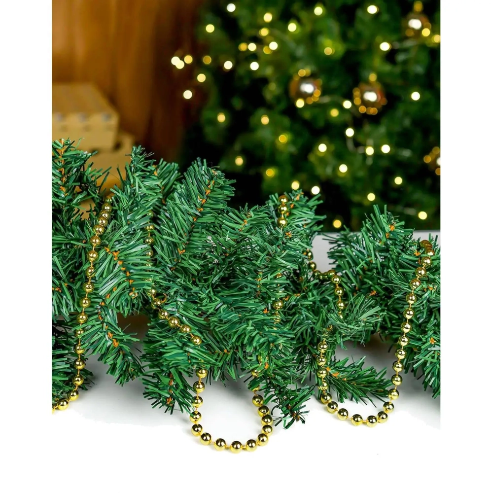 Бусы новогодние на елку Яркий праздник, d 1 см, длина 1,8м, золотые НУ-0053