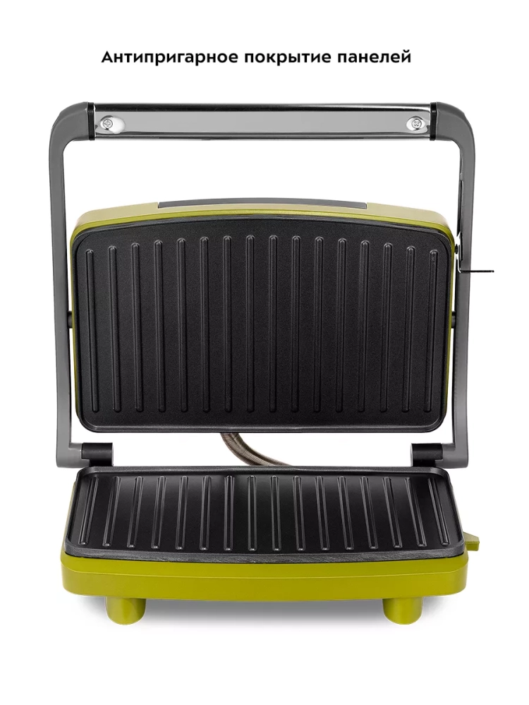 Антипригарное покрытие панелей позволяет готовить с минимальным количеством масла или вовсе без него, что упрощает процесс чистки. Размер панели составляет 23 х 15 см, что достаточно для приготовления нескольких порций одновременно. Бутербродница оснащена термостатом, который поддерживает оптимальную температуру панелей, а специальный фиксатор удерживает крышку в закрытом состоянии, обеспечивая безопасность и удобство при транспортировке и хранении.