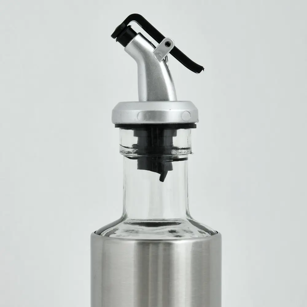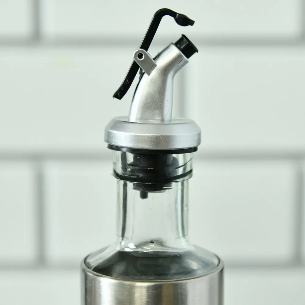 Бутылка со специальным носиком-дозатором для масла, соусов, уксуса, сиропов позволяет наливать масло ровной тонкой струйкой без разбрызгивания. Благодаря дозатору удобно контролировать расход масла. Клапан плотно прилегает к основанию горлышка, за счет чего обеспечивается полная герметичность. Стеклянная бутылка обеспечивает хорошую сохранность содержимого и не меняет его вкус.