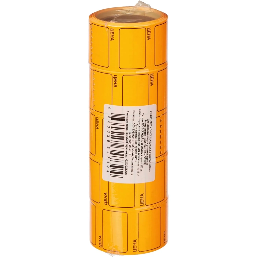 Ценники самоклеящиеся Цена 35x25мм, оранжевая 250шт/рул, 5 рул/уп