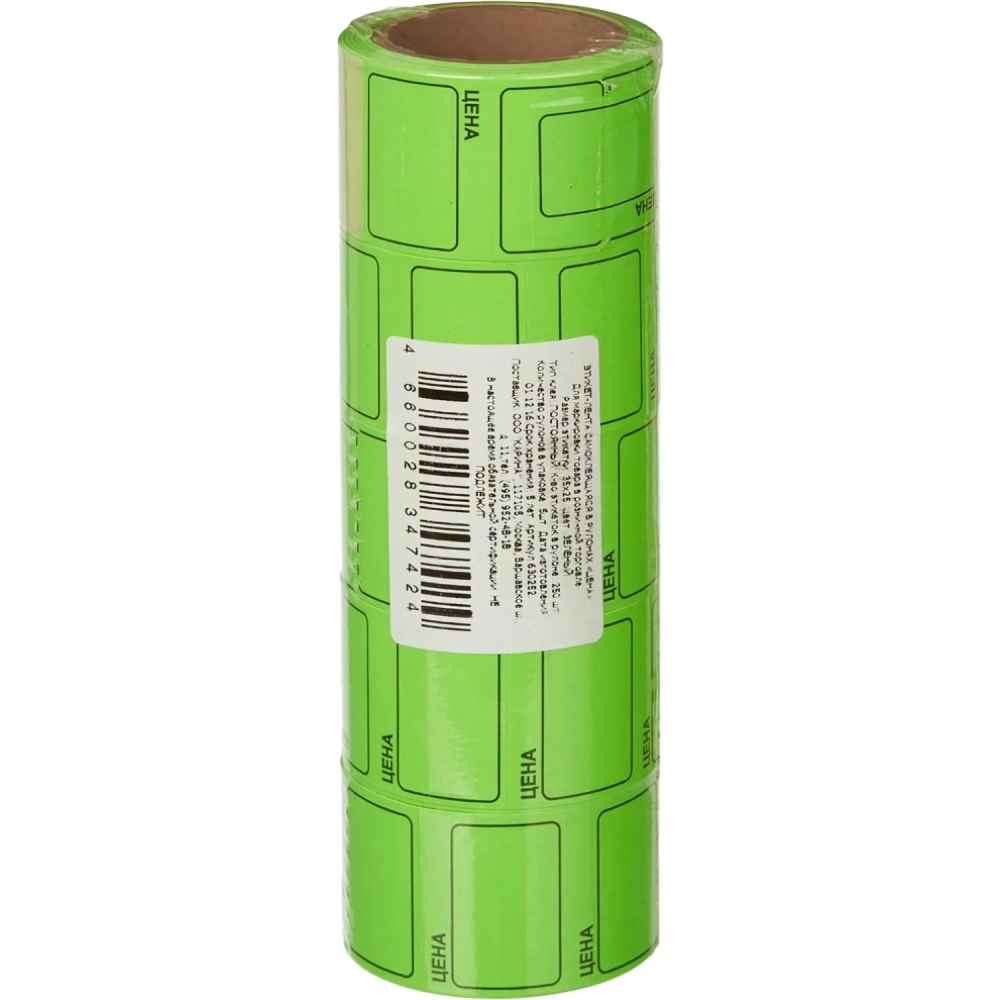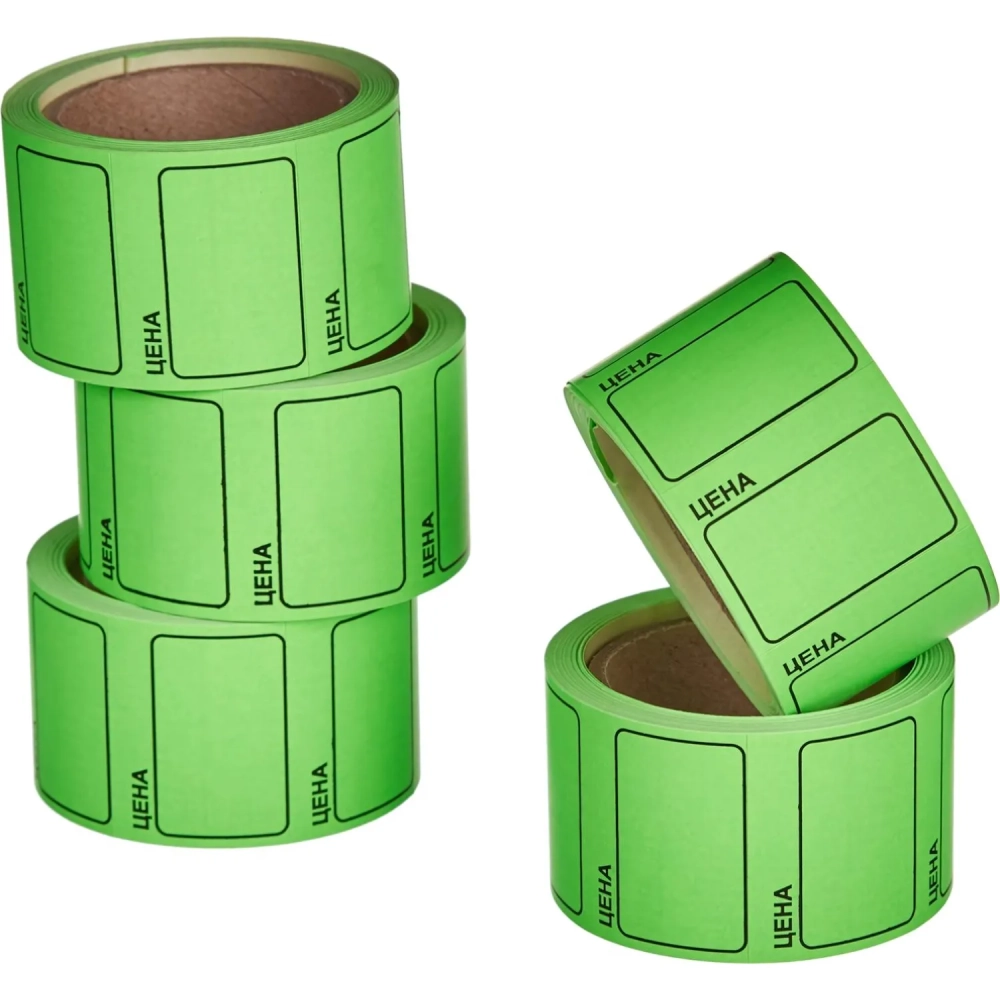Ценники самоклеящиеся Цена 35x25мм,зеленая 250шт/рул, 5 рул/уп