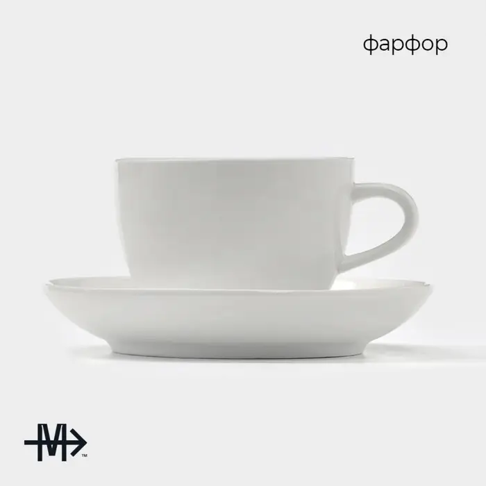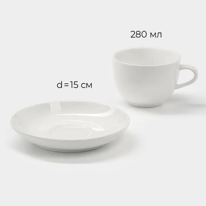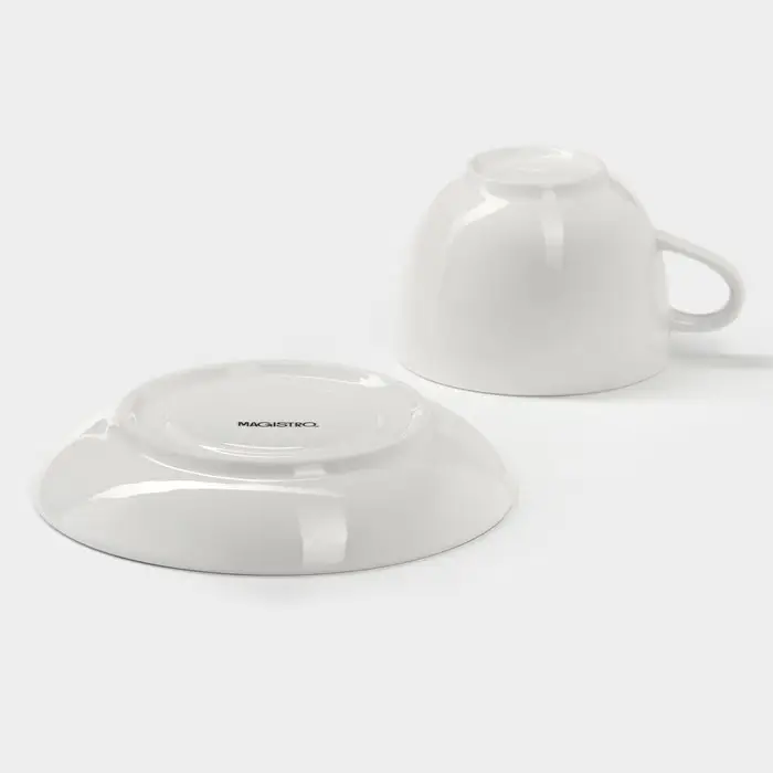 Чайная пара фарфоровая Magistro «Бланш», 2 предмета: чашка 280 мл, блюдце d=15 см, цвет белый
