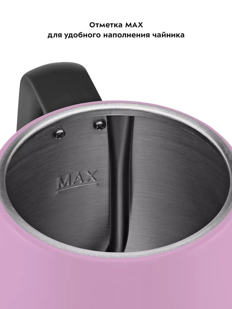 Чайник автоматически отключается при закипании, имеет защиту от перегрева и от включения без воды.