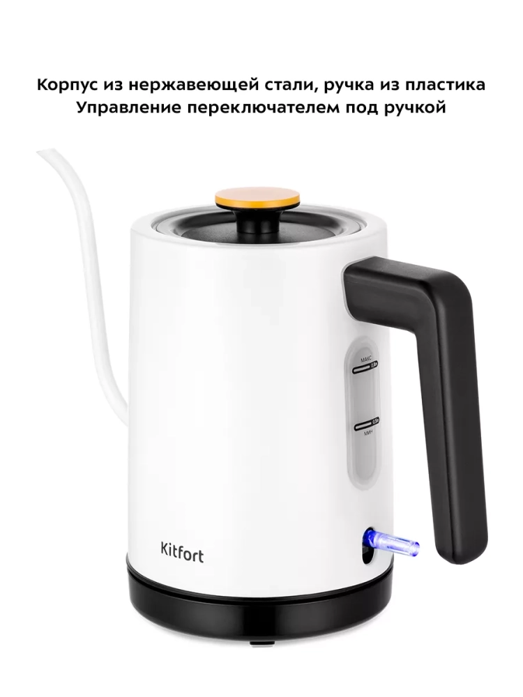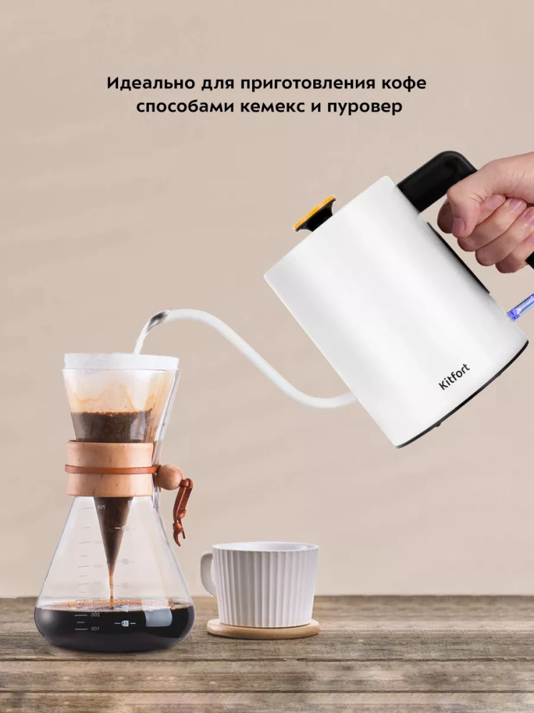 Электрический чайник Kitfort КТ-6642 предназначен для кипячения воды и приготовления кофе способами кемекс и пуровер.