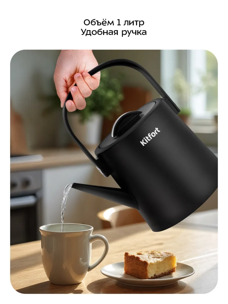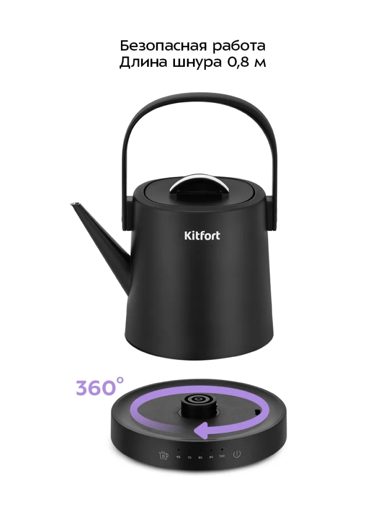 Подставка с центральным контактом дает возможность располагать на ней чайник в любом положении, обеспечивая вращение на 360°.
