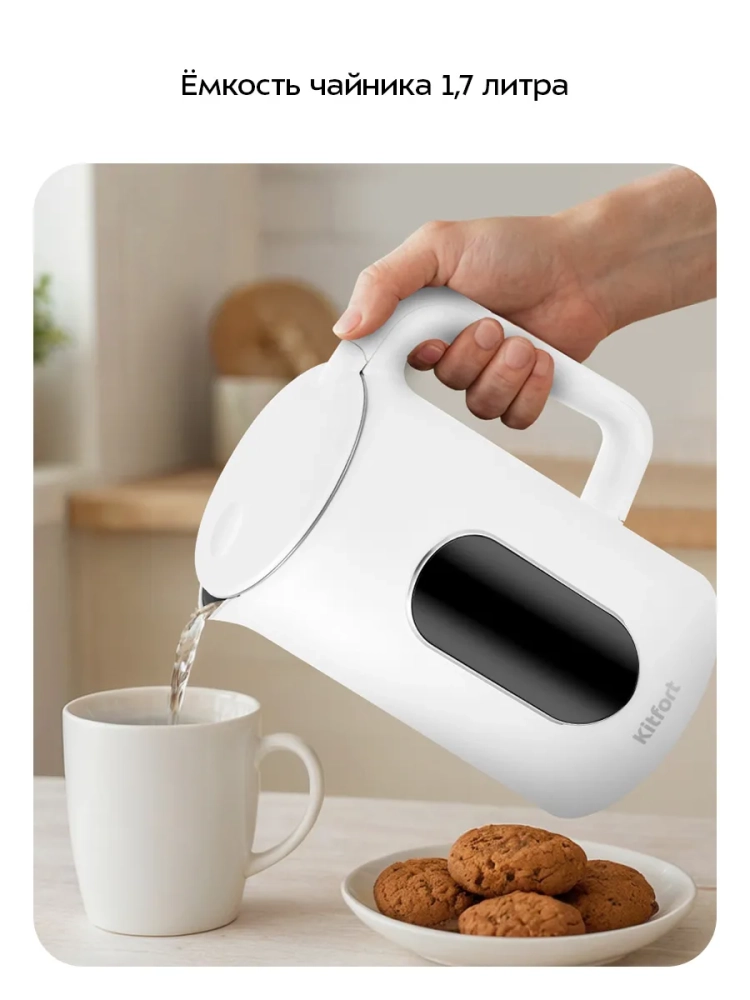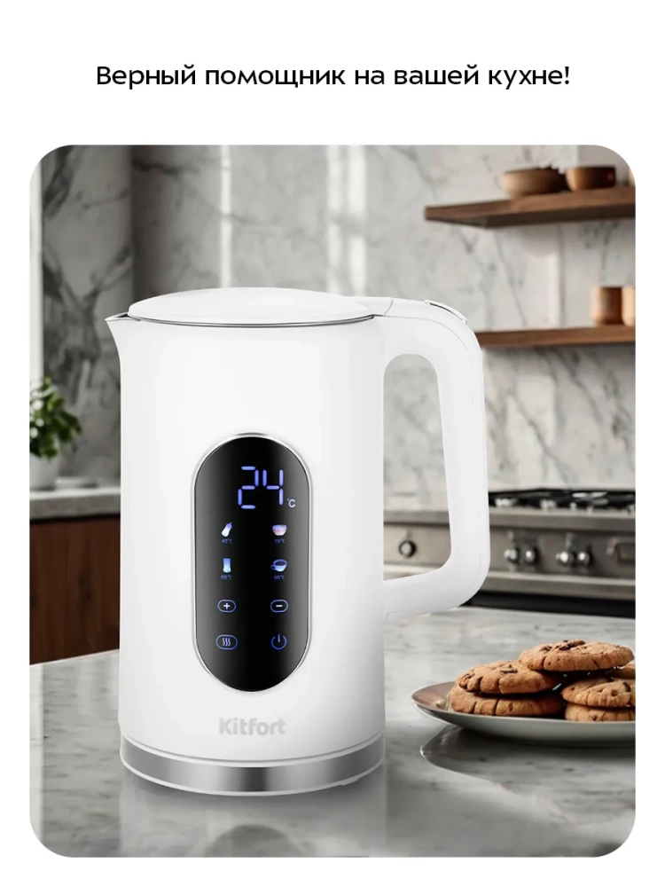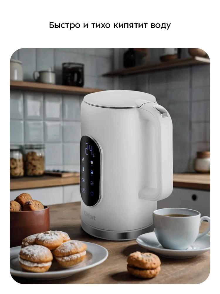 Этот чайник - прекрасный выбор для тех, кто стремится купить качественный электро прибор. Функция подогрева и поддержание температуры помогут быстро приготовить горячие напитки. В то время как некоторые электрочайники ограничиваются базовыми функциями, Kitfort предлагает расширенные возможности. Электрочайники Kitfort сочетают стильный дизайн и современную технологию регулировкой температуры, что делает их отличным выбором для дома или офиса.