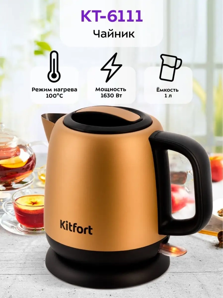 Электрический чайник Kitfort КТ-6111 предназначен для кипячения воды дома, в офисах и на дачах. Мощность чайника позволяет использовать его в домах со слабой проводкой.