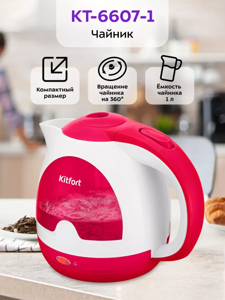Электрический чайник Kitfort КТ-6607 предназначен для кипячения воды дома, в офисе, на даче. Мощность чайника позволяет использовать его в домах со слабой проводкой.