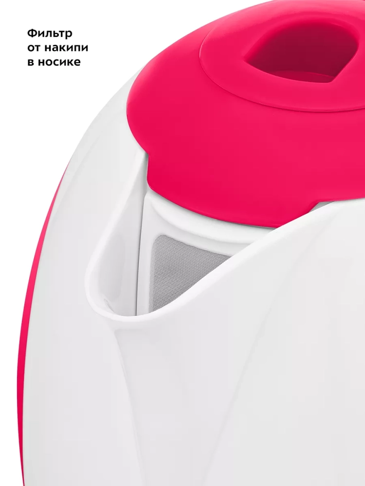 Чайник автоматически отключается при закипании, имеет защиту от перегрева и от включения без воды. В носике чайника расположен фильтр от накипи.