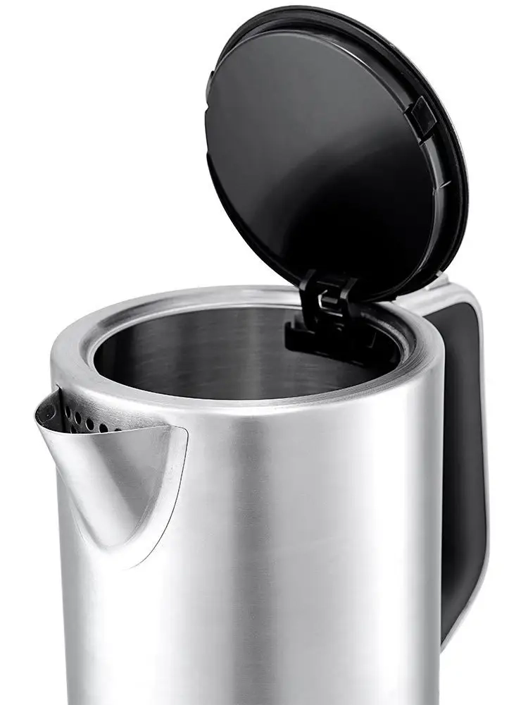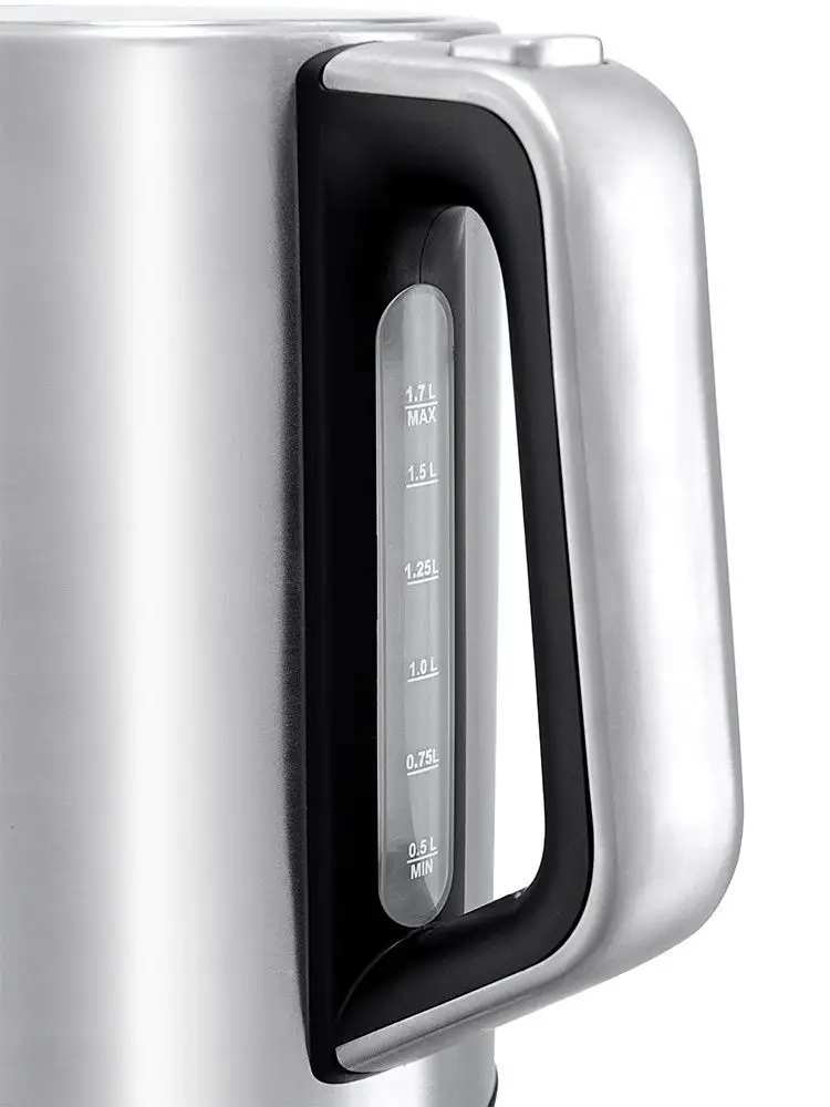 Корпус чайника выполнен из нержавеющей стали, а подставка — из сочетания пластмассы и нержавеющей стали. Большое горлышко чайника облегчает доступ внутрь при его мойке и во время удаления накипи. Ручка чайника пластиковая, не нагревается и удобно лежит в руке. Кнопка открывания крышки расположена сверху на ручке.