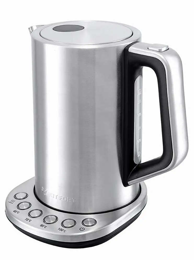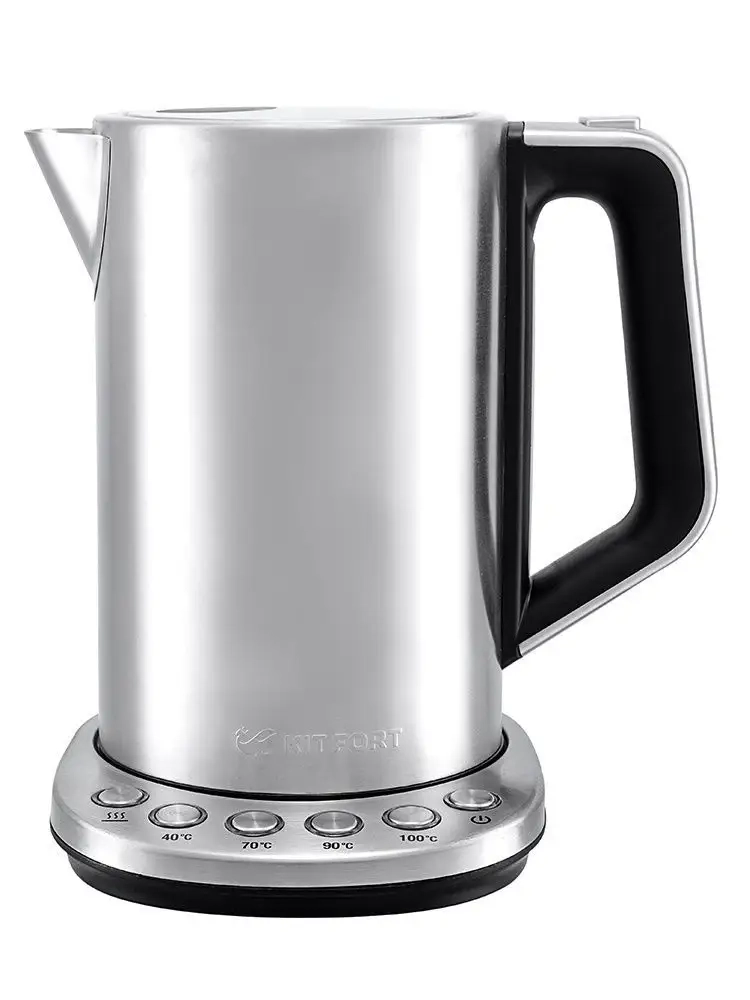 Электрический чайник с терморегулятором Kitfort КТ-621 может не только вскипятить воду, но и нагреть ее до температуры 40, 70 и 90 °С, что очень удобно при заваривании различных сортов чая. Температура 40 *С пригодится для приготовления детского питания. Чайник также оснащен функцией поддержания температуры. Температура воды контролируется встроенным в дно чайника термодатчиком.