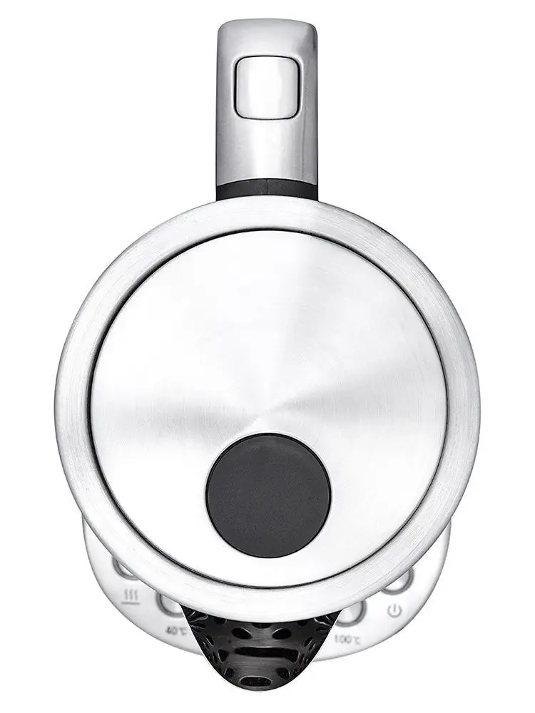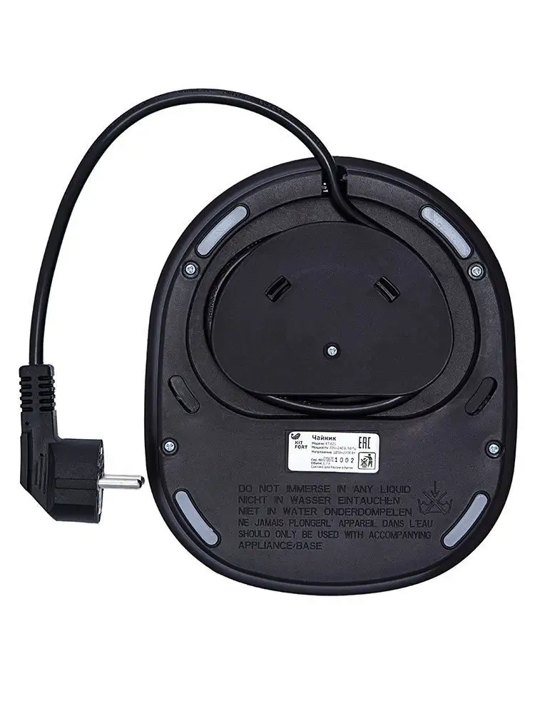 Подставка с центральным контактом дает возможность ставить чайник на нее в любом положении, обеспечивая вращение на 360°. Снизу имеется отсек для хранения шнура, в который можно смотать излишки шнура электропитания. На подставке расположены кнопки для включения и выключения чайника, установки режимов работы и выбора температуры. Все кнопки со световой индикацией, позволяющей легко определить, какой режим сейчас активен. При закипании, изменении режимов работы, а также при установке и снятии чайника с подставки прозвучит сигнал.