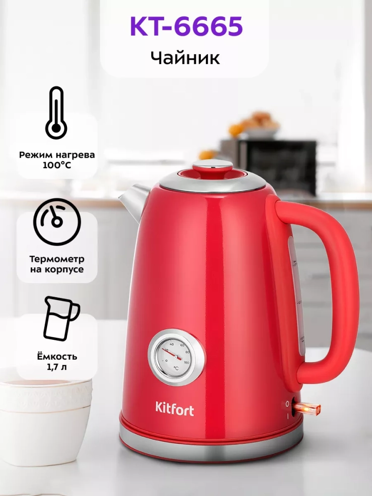 Электрический чайник Kitfort КТ-6665 предназначен для кипячения воды дома, в офисе, на даче.
