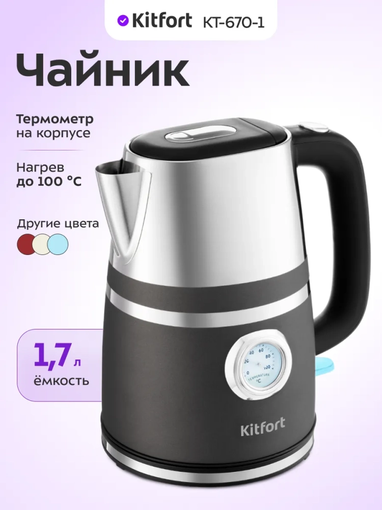 Электрический чайник Kitfort КТ-670 предназначен для кипячения воды дома, в офисах и на дачах. Мощность чайника позволяет использовать его в домах со слабой проводкой.