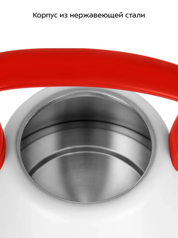 Нагревательный элемент (ТЭН) у этой модели чайника скрытый и находится в донной части. Сверху он закрыт специальной металлической пластиной из нержавеющей стали, благодаря которой исключается прямой контакт ТЭНа с водой. Такая конструкция препятствует образованию накипи, облегчает уход и значительно снижает шум при нагревании воды.