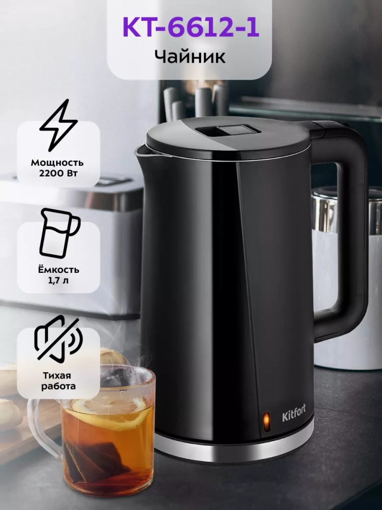 Электрический чайник Kitfort КТ-6612 предназначен для кипячения воды дома, в офисе, на даче. Полный чайник закипает примерно за 6 минут.