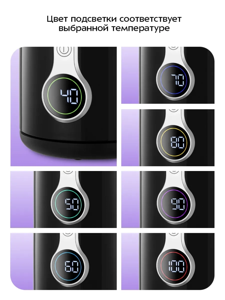 Вокруг дисплея расположен индикатор, цвет которого во время нагрева меняется в зависимости от температуры воды.