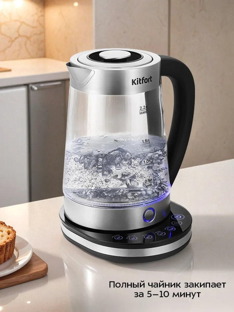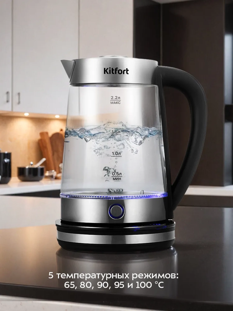 Электрический чайник Kitfort КТ-6764 подходит для использования как дома, так и в офисе. Его стеклянный корпус позволяет наблюдать за процессом кипячения, а металлические элементы добавляют прочности. Электрочайники Kitfort — это надежные устройства, которые обеспечивают быстрое кипячение воды и поддержание температуры на заданном уровне.