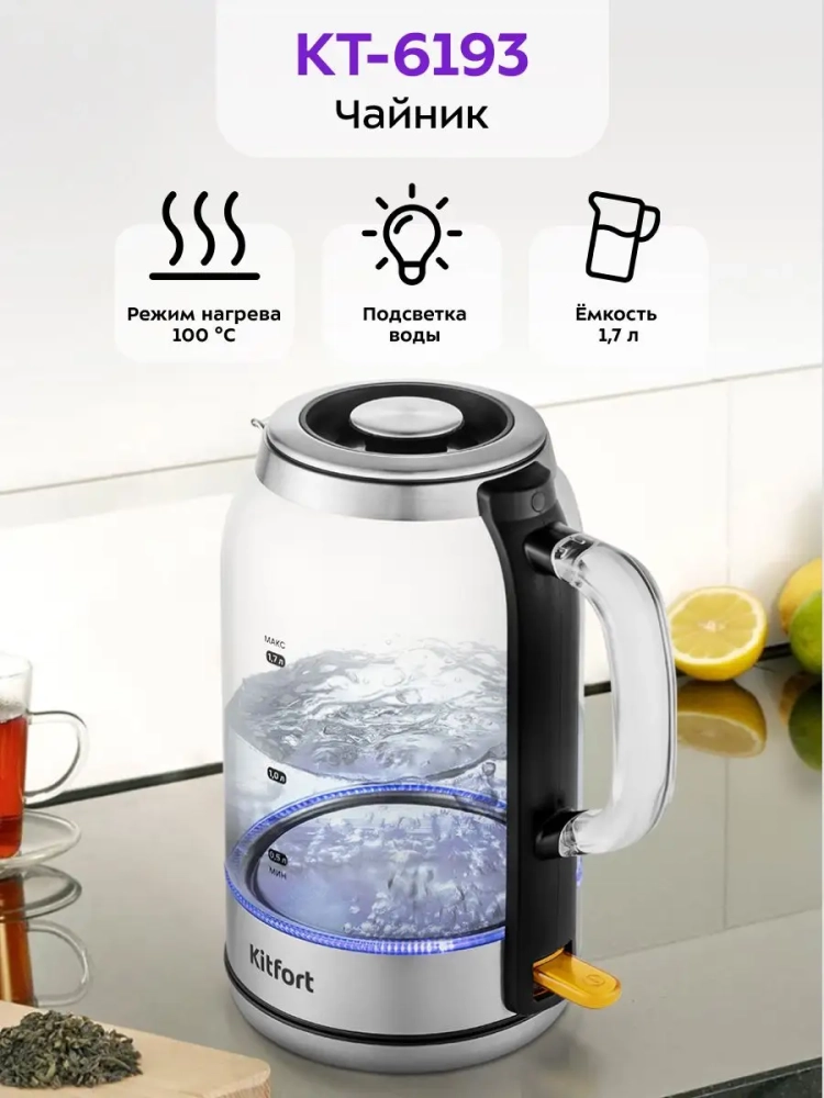 Электрический чайник Kitfort КТ-6193 предназначен для кипячения воды дома, в офисе, на даче.