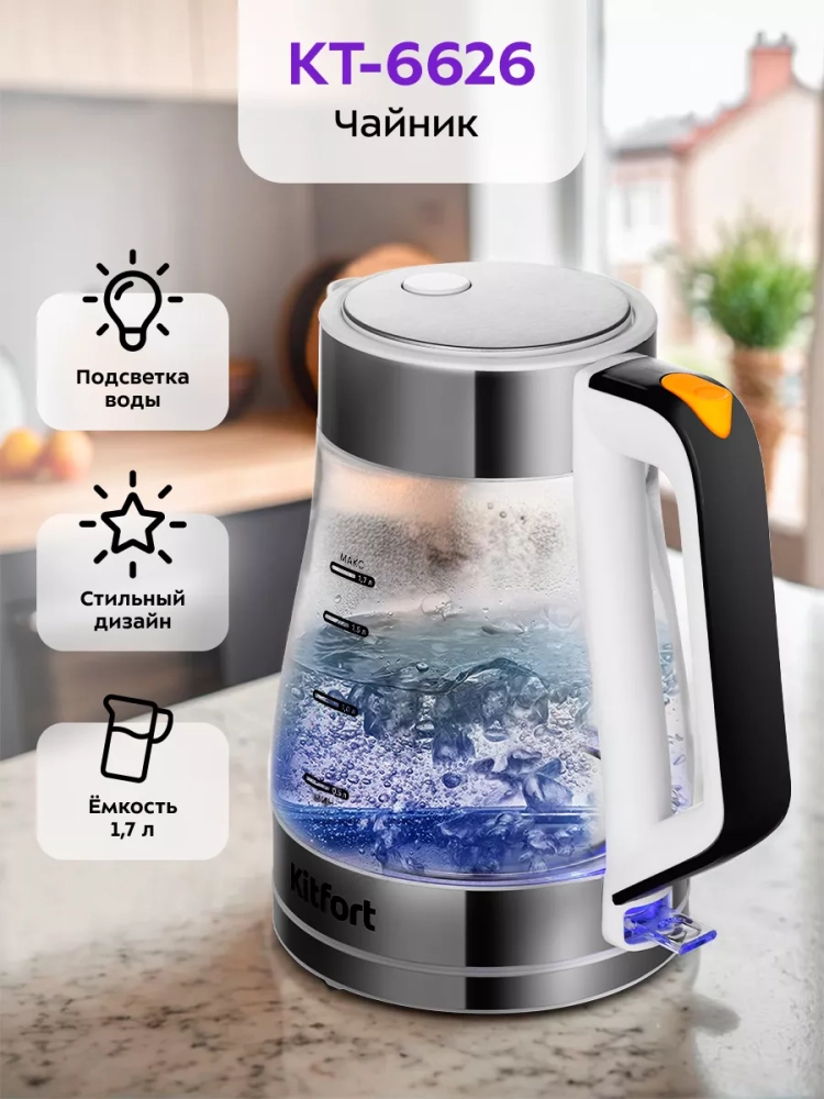 Электрический чайник Kitfort КТ-6626 предназначен для кипячения воды дома, в офисе, на даче.