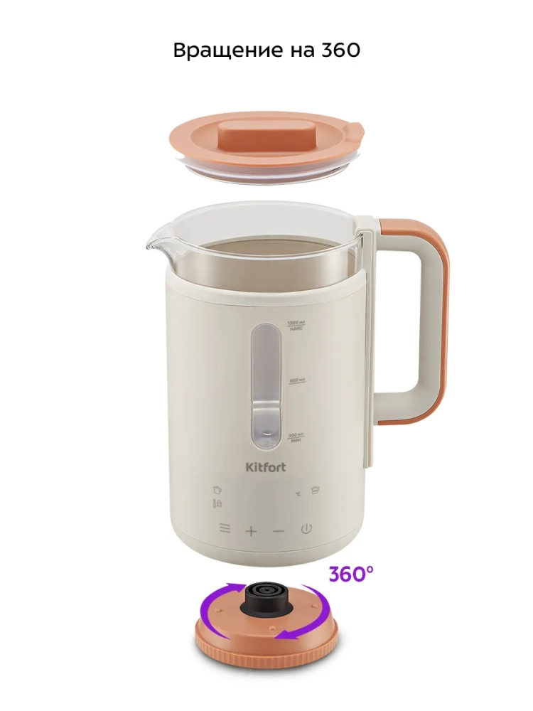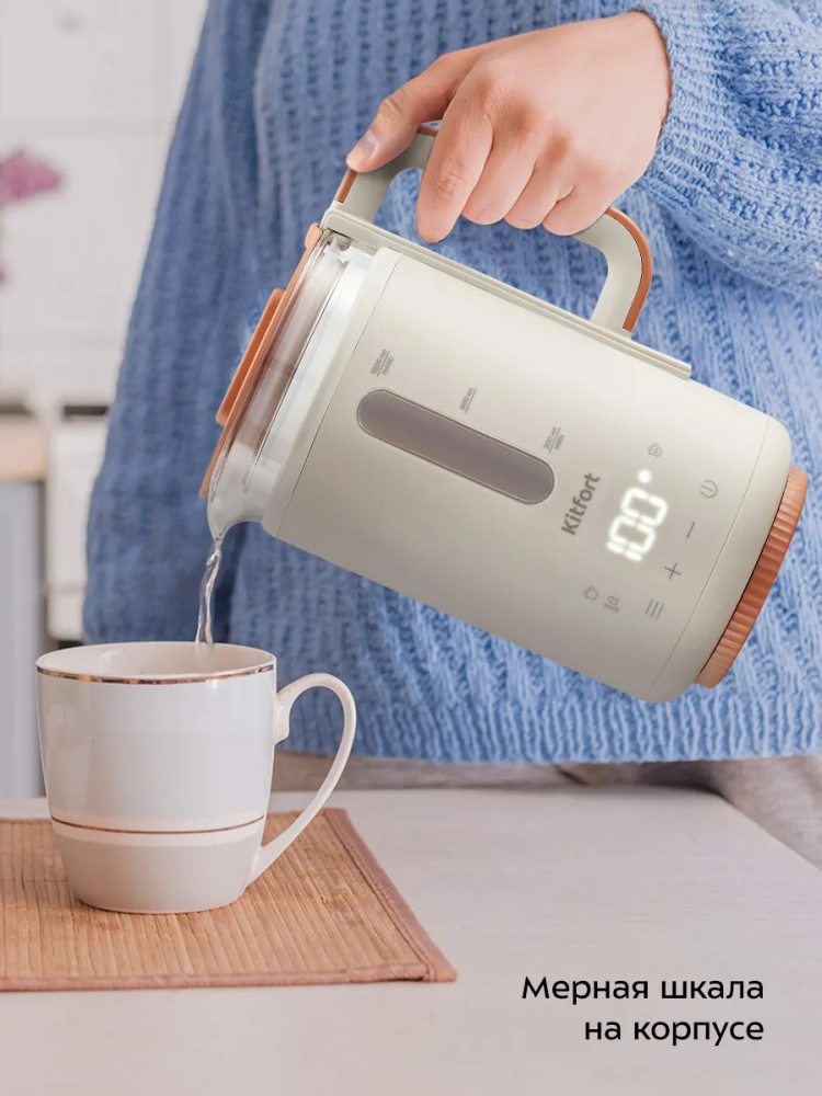 Электрический чайник с электронным терморегулятором Kitfort КТ-6695 может не только вскипятить воду, но и нагреть ее до температуры: от 35 до 85 °С, что очень удобно при заваривании различных сортов чая. Температура 45 °С удобна для приготовления детского питания. Чайник также оснащен функцией поддержания температуры до 48 часов и функцией дехлорирования. Температура воды контролируется встроенным в дно чайника термодатчиком.