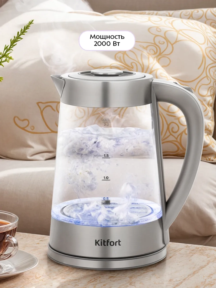 Чайник электрический стеклянный КТ-6763 - 2,2 л