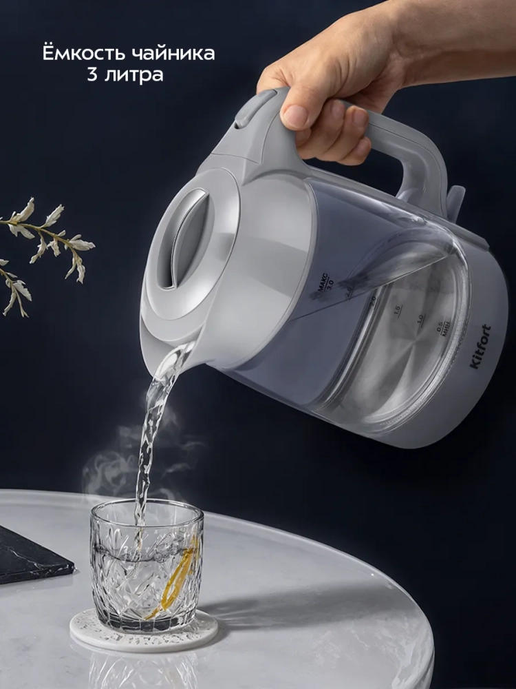 Чайник электрический стеклянный КТ-6766 - 3 л