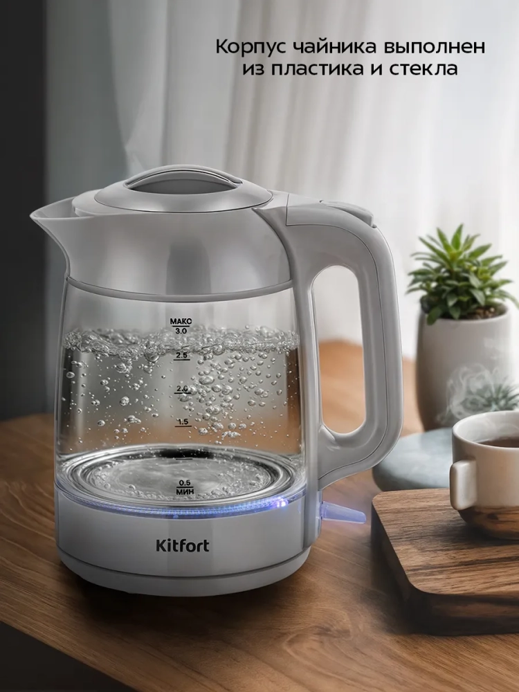 Электрический чайник Kitfort КТ-6766 предназначен для кипячения воды дома, в офисе, на даче. Прибор также может поддерживать температуру воды 90 °С ±5%.