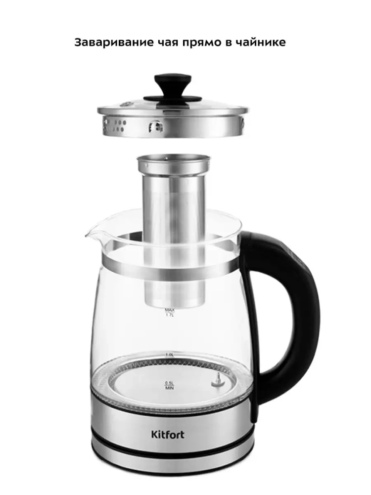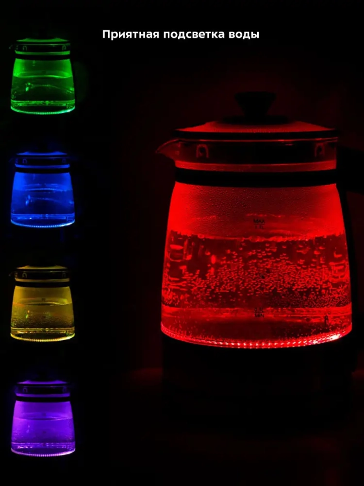 Чайник электрический стеклянный с подсветкой КТ-6119 - 1.7 л