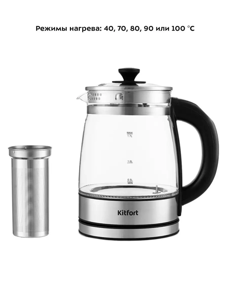 Электрический чайник Kitfort КТ-6119 — это идеальное решение для вашей кухни. Этот стеклянный электрочайник с подсветкой сочетает в себе стильный дизайн и передовые технологии, обеспечивая удобство и функциональность. Объем 1.7 литра позволяет быстро вскипятить воду для всей семьи. Умный терморегулятор позволяет нагревать воду до 40, 70, 80 и 90 °С, что делает его незаменимым для заваривания различных сортов чая и приготовления детского питания.