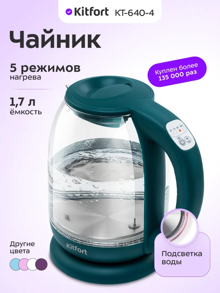 Электрический чайник Kitfort КТ-640 — это идеальное электро решение для вашей кухни. Чайник с подсветкой объёмом 1.7 литра станет незаменимым помощником в вашем доме. Прозрачный корпус позволяет наблюдать за процессом нагрева воды, а встроенная подсветка добавляет эстетики и удобства в использовании. Электрочайник оснащён надёжным нагревателем, который обеспечивает быстрый и равномерный нагрев воды. Электрический чайник Kitfort — это не просто бытовая кухонная техника, а умный прибор для вашей кухни. Он оснащён контроллером с температурным режимом, что позволяет заваривать чая с идеальной температурой. Кнопка включения расположена удобно, что делает использование чайника простым и интуитивно понятным. Этот электрический чайник подходит как для дома, так и для офиса. Он станет отличным дополнением к вашей кухне, добавляя современный стиль и функциональность. Чайник Kitfort — это не только техника, но и элемент декора, который подчеркнёт ваш вкус и стиль. Электрочайник Kitfort КТ-640 — это надёжность и качество, проверенные временем. Он идеально подходит для заваривания чая и других горячих напитков. Благодаря объёму 1.7 литра, чайник способен удовлетворить потребности всей семьи или небольшого офиса. Электрический чайник Kitfort — это ваш надёжный помощник на кухне, который обеспечит комфорт и удобство в повседневной жизни. Независимо от того, используете ли вы его для приготовления чая или других напитков, этот чайник всегда будет на высоте.