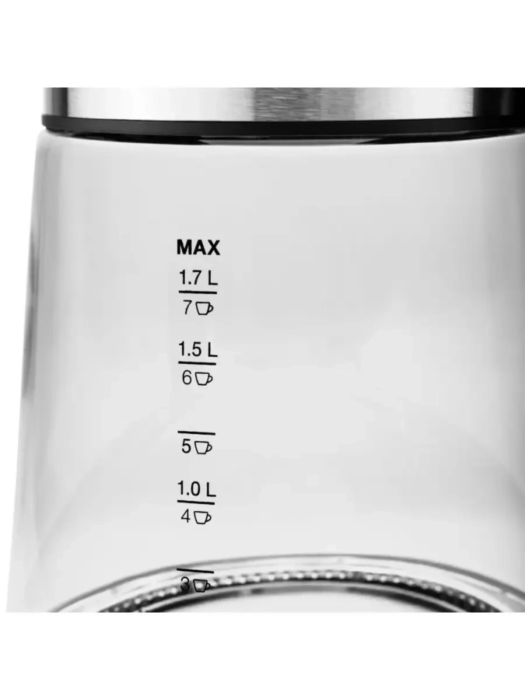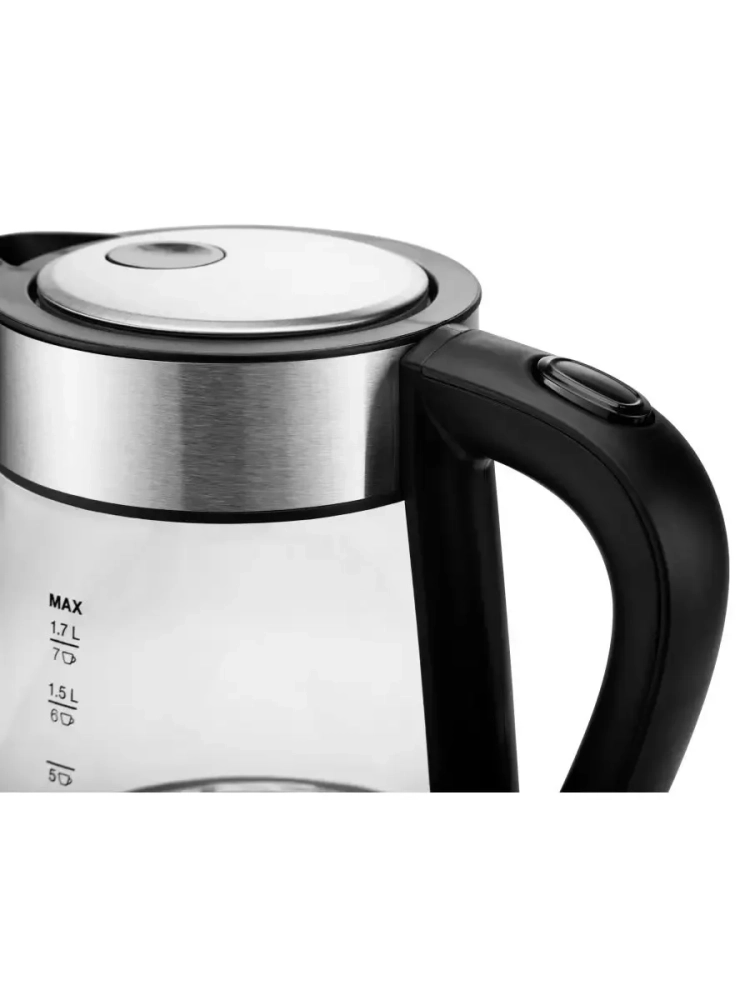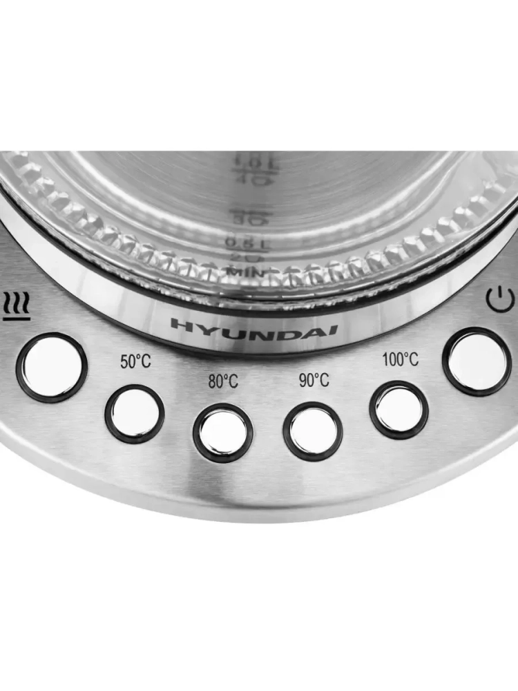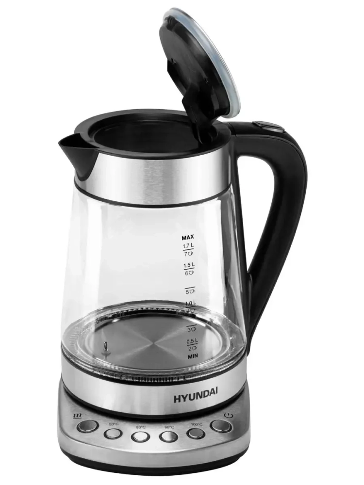 Чайник электрический Hyundai HYK-G3026 серебристый/черный, объём 1.7л, мощность 2200Вт, материал корпуса: стекло.