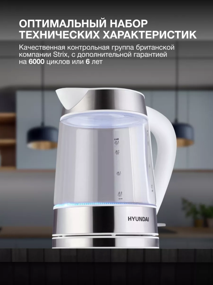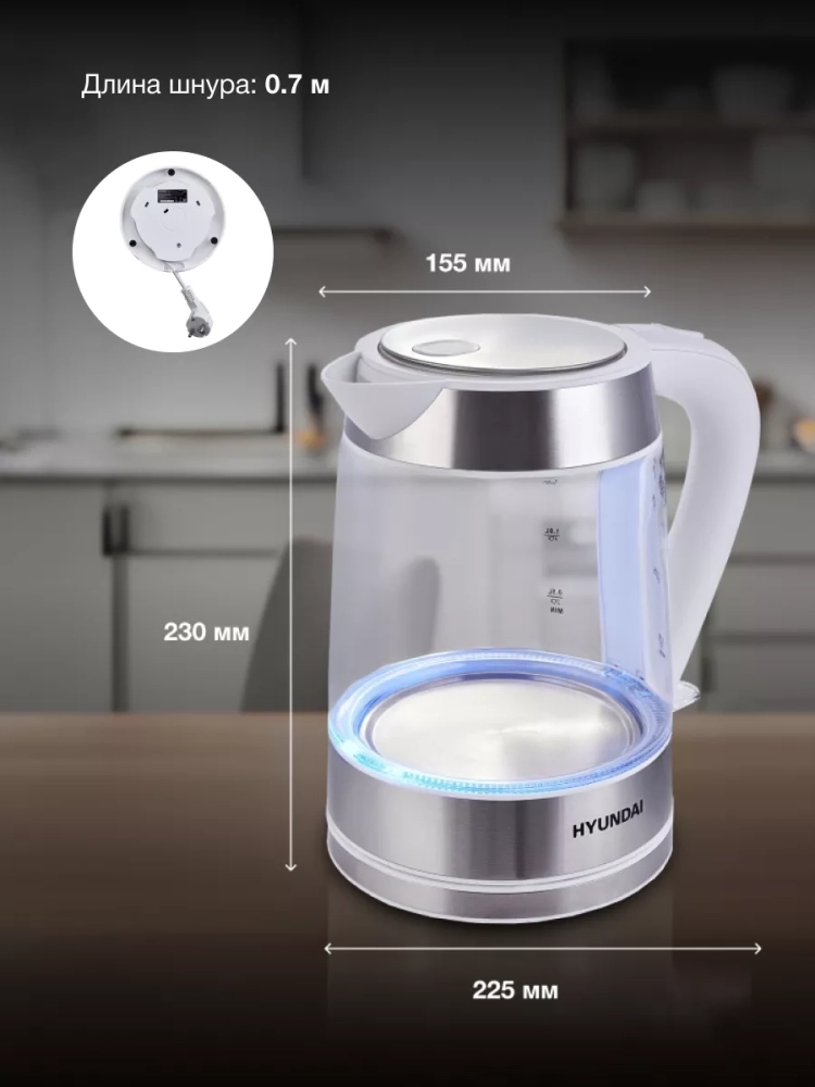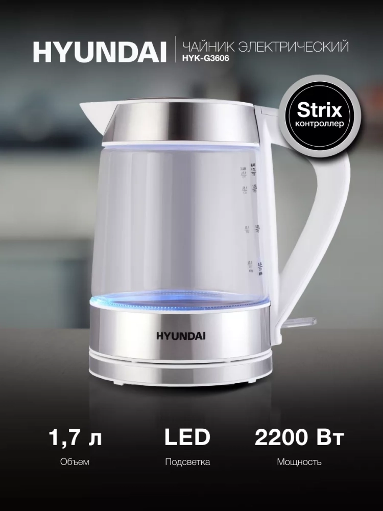 Электрический чайник Hyundai HYK-G3606 — это отличный выбор для тех, кто ценит качество и надежность. Благодаря современному дизайну и нейтральной цветовой гамме он станет гармоничным дополнением к любому интерьеру.