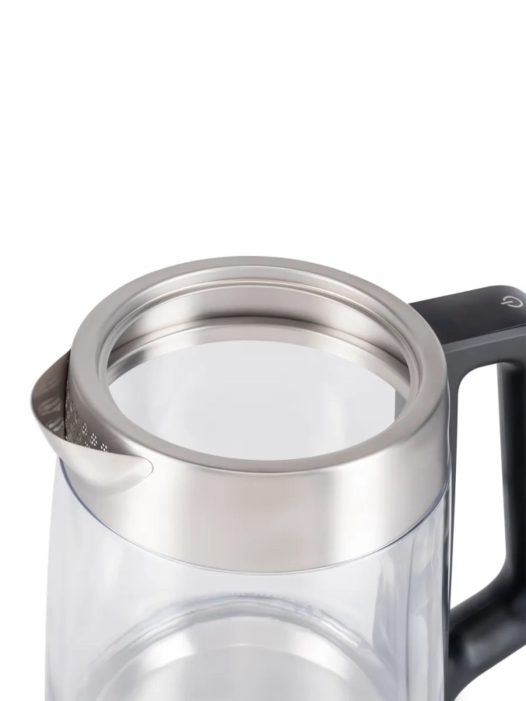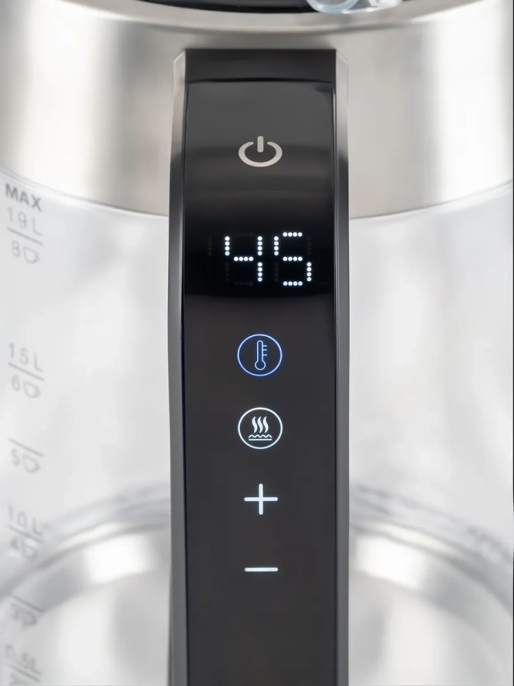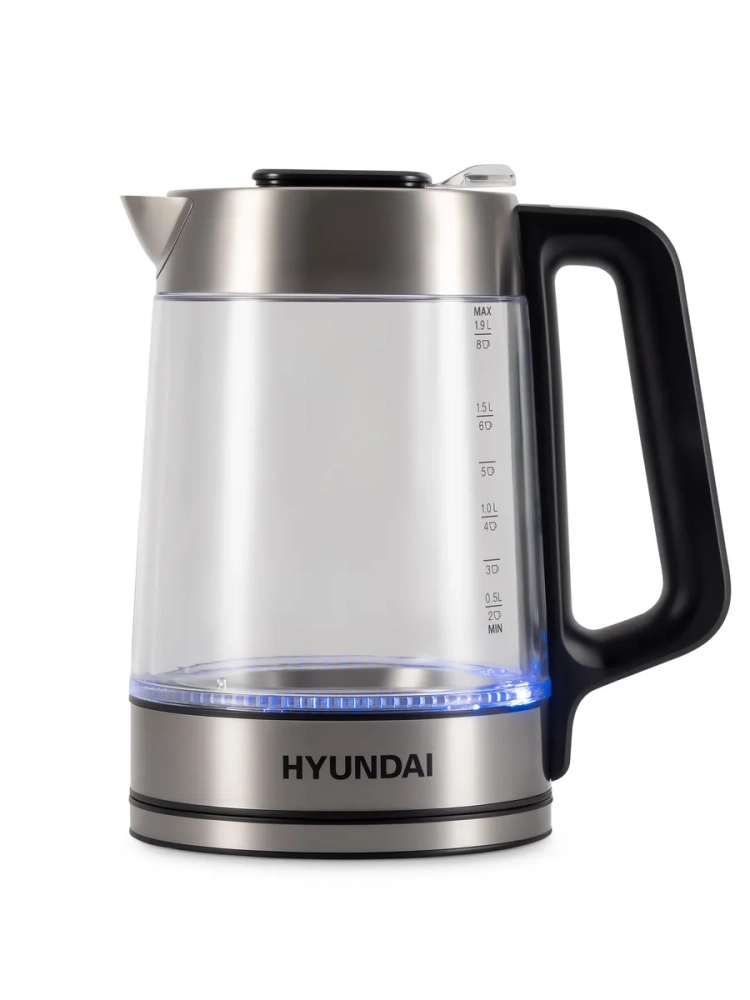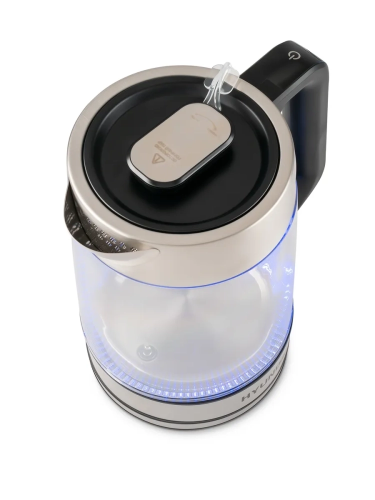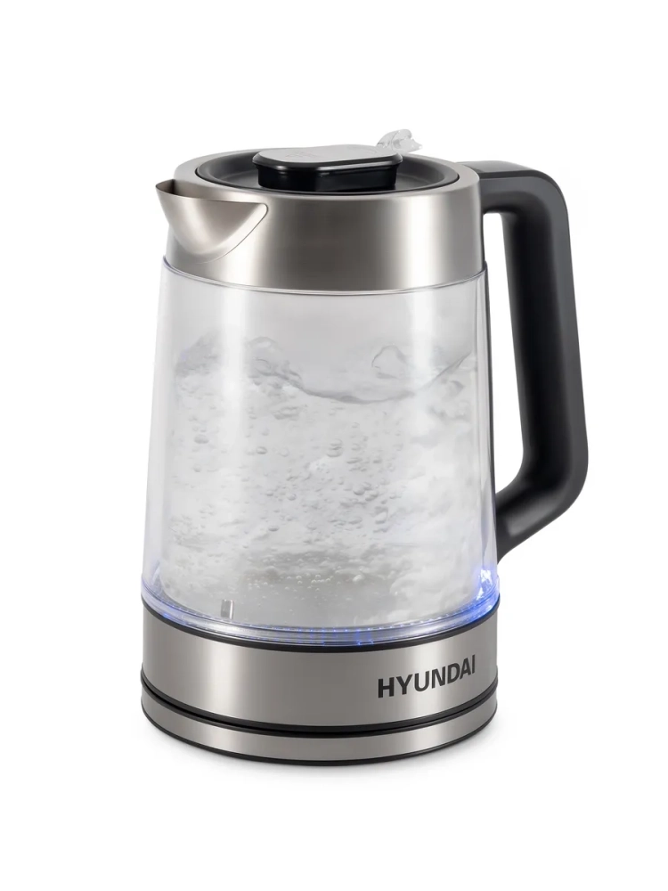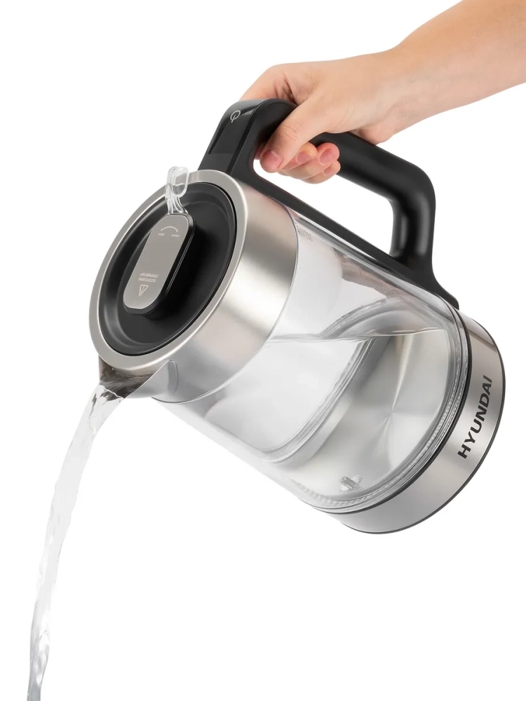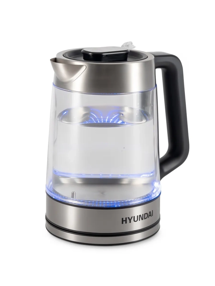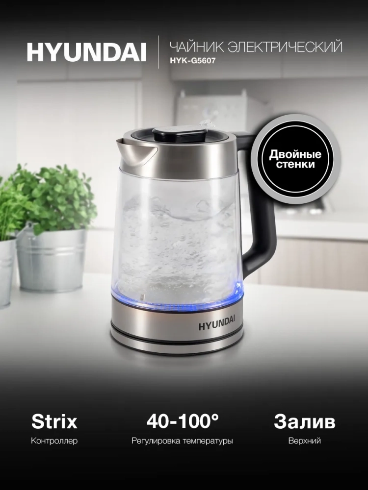 Чайник электрический Hyundai HYK-G5607 черный/серебристый, объём 1.9л, мощность 2200Вт, материал корпуса: стекло. Двойной теплоизолированный корпус. Внешний корпус из прозрачного пластика, защищает от случайного ожога при прикосновении. Внутренний корпус из боросиликатного стекла, не впитывает и не выделяет примесей, не темнеет и не окрашивается со временем. Электрический чайник с двойными стенками для быстрого приготовления теплой и горячей воды нужной температуры под разные цели. Это не просто чайник, а современный, безопасный и качественный инструмент на вашей кухне под разные задачи. Информационный дисплей, сенсорное управление установками температуры 40-100С и функцией поддержания, для любых напитков и бытовых нужд. Съемная крышка с возможностью залива через нее.